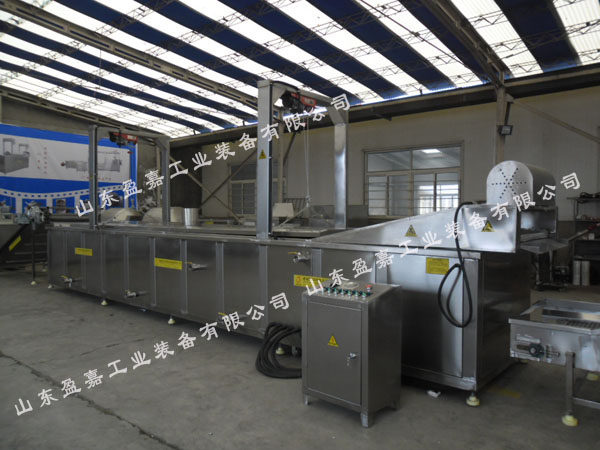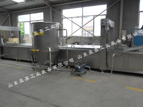 浸泡→輸送→切口→輸送→油炸→浸油→脫油→調(diào)味→冷卻→包裝一款油炸機(jī)