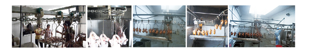 懸掛式炸雞鴨油炸流水線工藝流程: